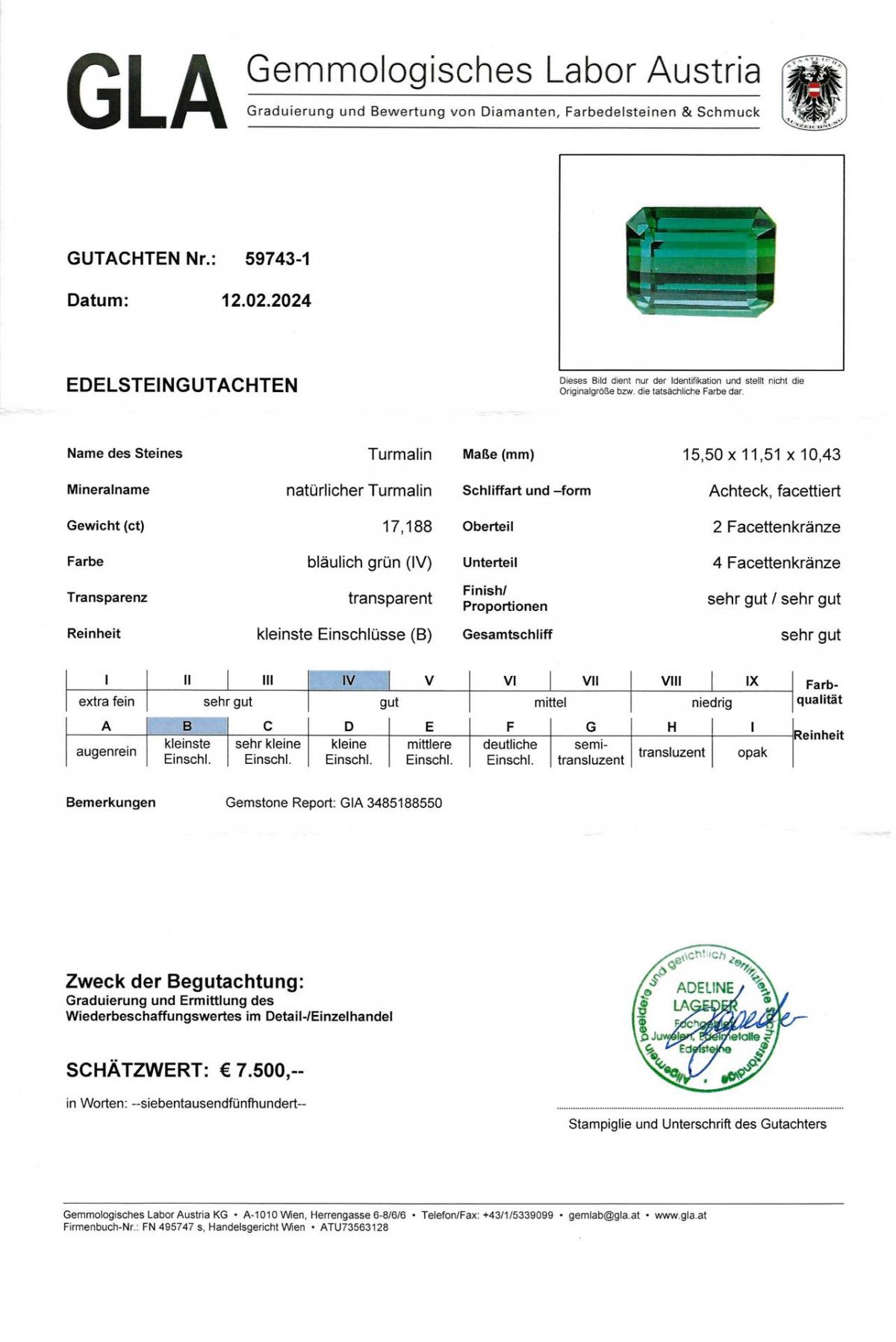 Turmalin blau-grün brasilien